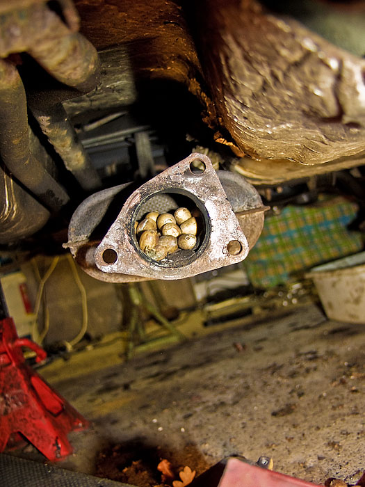 mouse stored nuts in cat